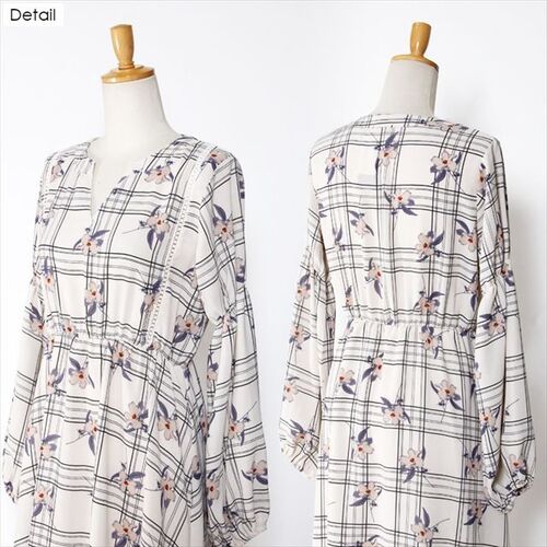 レトロな雰囲気で高級感ある一枚。ウエストの切り替えでストンとしたシルエットにならず、ベルトを合わせればさらにスタイルアップ間違い無し。 チェックと花柄のプリントとさりげないレースがオシャレ。落ち着いた大人可愛い着こなしが楽しめるロングワンピ…
