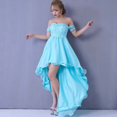 肩とデコルテ、背中を魅せれるオフショルドレス。可愛くセクシーなテールカットと胸元レースとの切り替えによって脚長美脚演出。 厚底やハイヒールタイプの靴と相性抜群。左脇ファスナー仕様です。 ■カラー内容 黒 白 赤 イエロー ライドブルー 全5色 レース…
