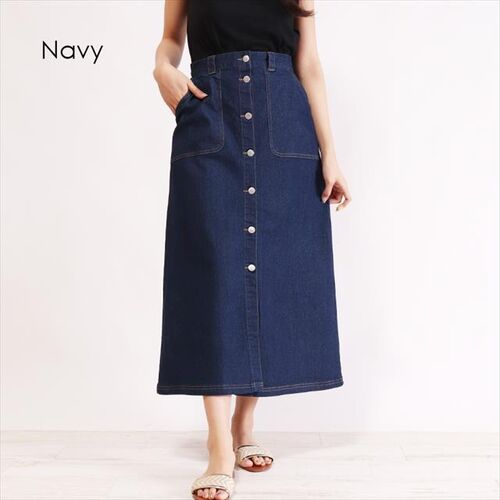フリントボタン×大きめのパッチポケットがpointです☆台形型のため、腰から脚にかけて細く見せてくれます♪ 後にはゴムも付いていてとても着やすく、お尻部分はポケットがあり利便性もGOOD☆また、深めに入ったフロントスリットも女性らしさのアクセントに♪ デ…